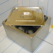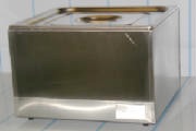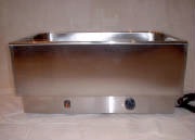 Stainless steel pans mounted over hot water keep food, sauces, etc at serving temperature for up to 2 hours. Temperature control is by microprocessor with digital readout. Various combinations of pan size available plus lids, full and notched.